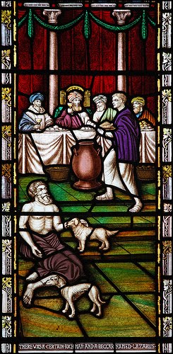 In today's gospel we find the parable of the unnamed rich man and the destitute Lazarus. During their time on earth these two were separated by the rich man's gates which divided the world of luxury and plenty from the world of poverty, hunger, and humiliation. The rich man chose to cut himself off from his community and from God, and instead devote his attention to 'fine clothes' and 'sumptuous feasting' (Luke 16:19). It is almost as if this choice of material things over communion, over love, has become fixed in eternity in the form of an 'unbridgeable chasm' (Luke 16:26) between the rich man and his neighbour. After his death the rich man is alone, tormented by the flames of his desire, longing for sensual consolation in the form of a drop of water (Luke 16:24). In contrast Lazarus, who suffered so much at the rich man's gates, is taken to Abraham's bosom by the angels. He is in communion with God and neighbour; he is at rest.